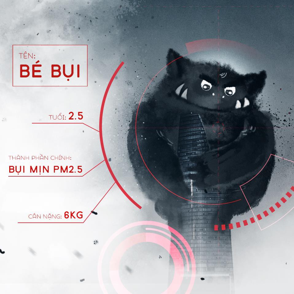 Profile của bé Bụi khá là "hết hồn" với cân nặng 6kg kết tinh toàn bụi mịn PM2.5, nên bạn đừng để vẻ mặt đáng yêu của nó đánh lừa nhé vì thực ra bất cứ ai trong chúng ta cũng mang trên mình 6kg bụi/năm.
